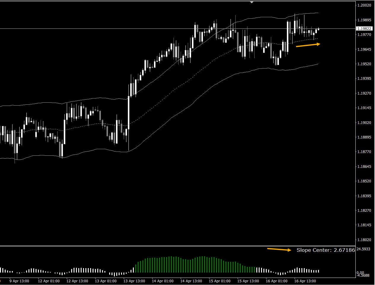 If slope is Green, it indicates TMA lines are sloping upwards and price is in upwards bullish trend.