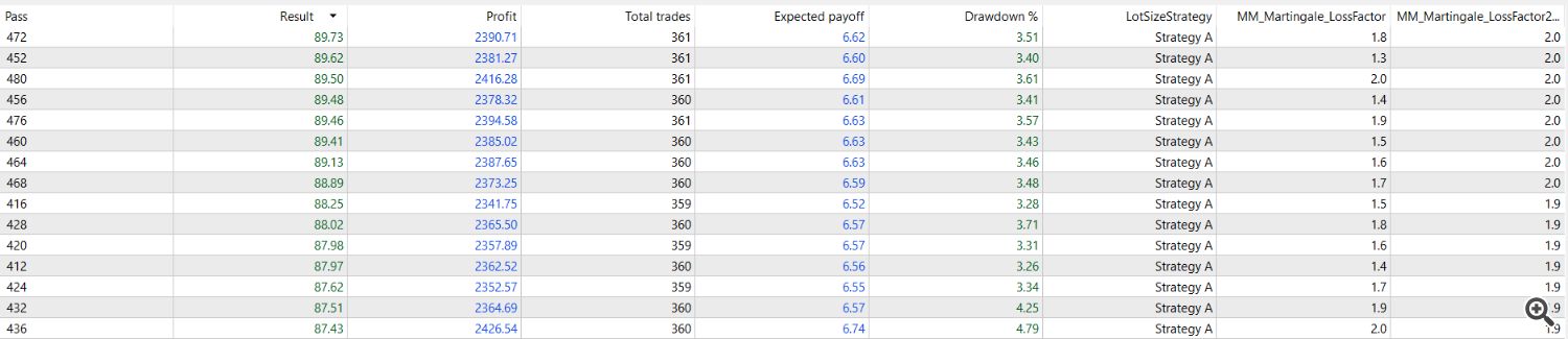 Conclusion: The results suggest that opting for a faster recovery, using a multiplier close to 2, which implies doubling the position size, is more effective. Moreover, Strategy A tends to be the most favored in this approach, reflecting geometric management of trades and maximizing recovery potential in a shorter time.