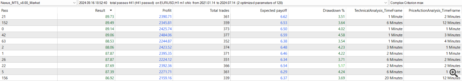 Conclusion: Contrary to what one might expect, lower timeframes have shown better performance. Although I believe higher timeframes should be more efficient when using indicators, in the case of Nexus, its strategies suggest that a lower timeframe serves as a quicker and more accurate trigger for signals. This could explain its better performance under these conditions.