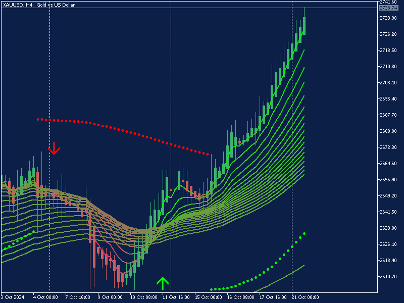 A XAUUSD H4 chart set up to easily recognize the trend