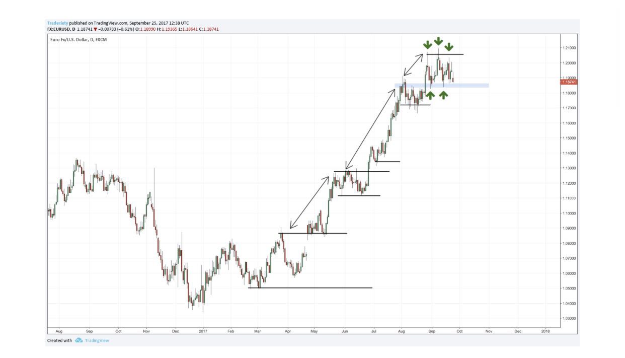 Once the price starts to break the “higher high / higher low” or “lower high / lower low” pattern that characterizes healthy trends, you realize that something significant is taking place. In the case of the EUR/USD example, when the price breaches the previously highlighted blue level, it will register the first lower low for the first time in over four months. By integrating all these points, we can conclude that the trend is likely on the verge of reversing.