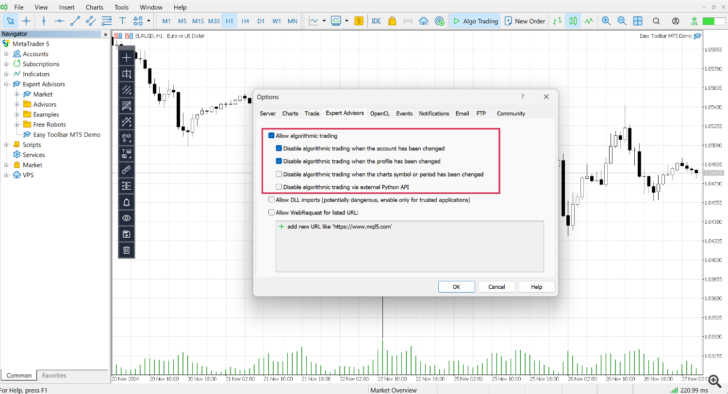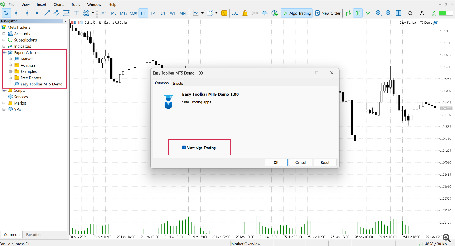 - Double-click on Easy Toolbar MT5 Demo to attach it to chart