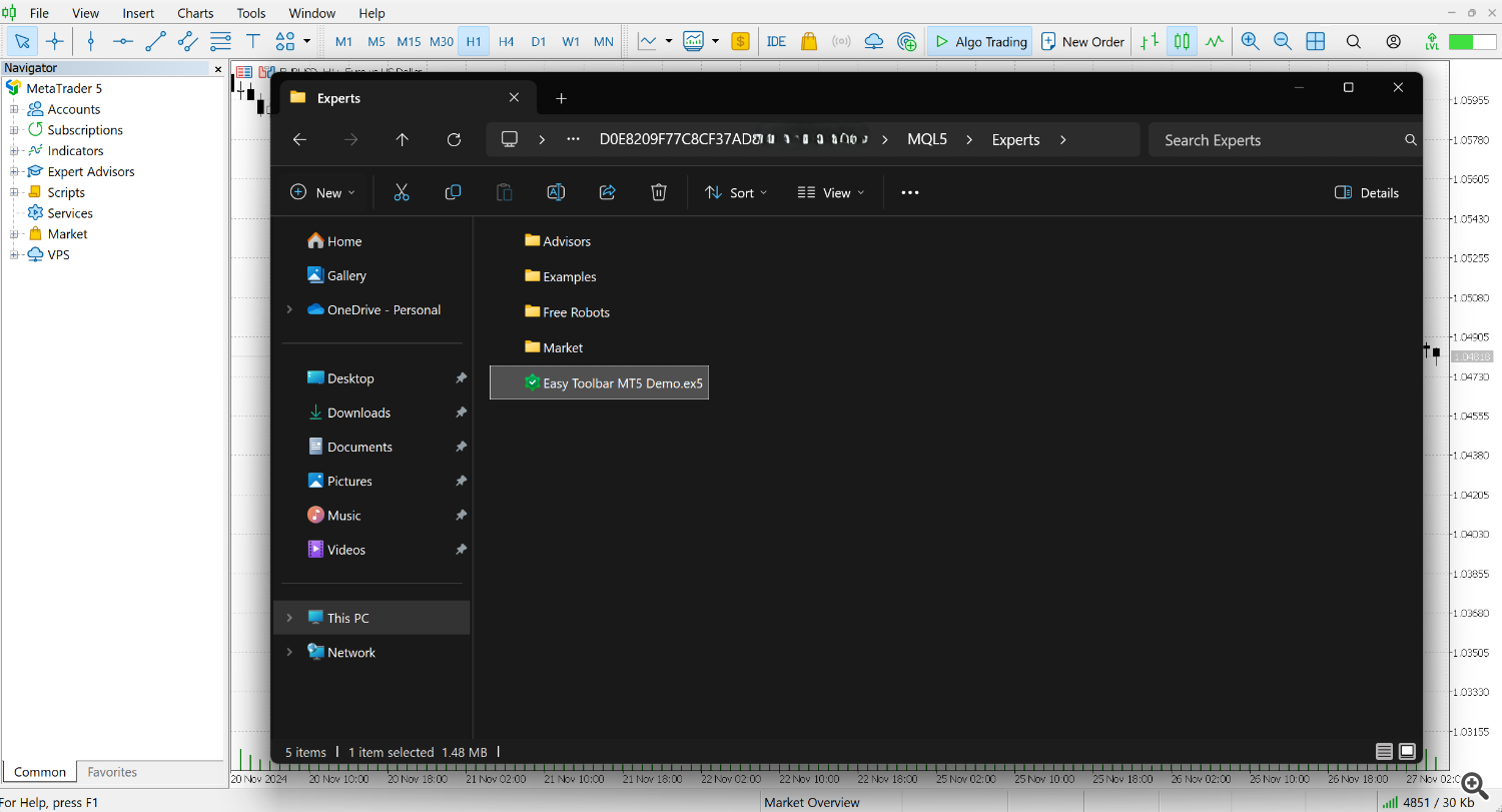 - Right click on Expert Advisors folder and click Refresh to show Easy Toolbar MT5 Demo