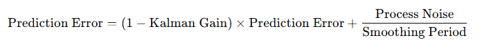 Step 5: Update the Prediction ErrorThe prediction error is updated and gradually decreases over time, reflecting increasing confidence in the estimate: