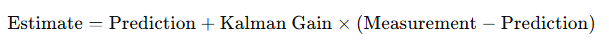 Step 4: Update the EstimateUsing the Kalman Gain, the predicted value is adjusted based on the discrepancy between the actual measurement and the predicted value: