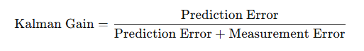 - If Prediction Error is small (accurate prediction), the Kalman Gain is low, meaning the prediction carries more weight.