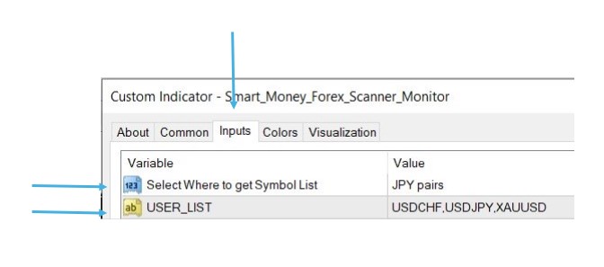 1. Open the Smart_Money_Forex_Scanner_Monitor Indicator by dragging it onto the chart.