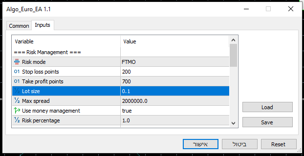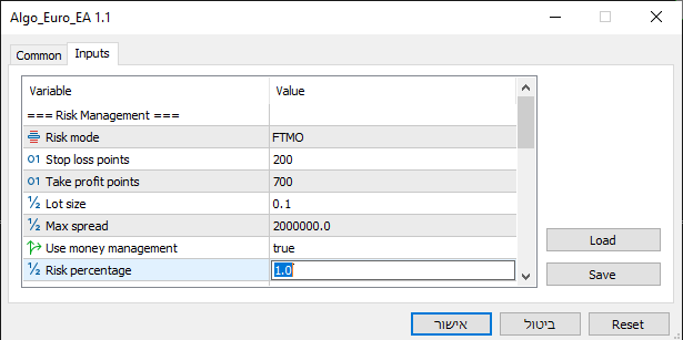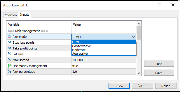 It is recommended to use either the FTMO or Modern risk modes, as both are the most profitable options. Once the risk mode is selected, set the daily risk percentage in the input parameters.