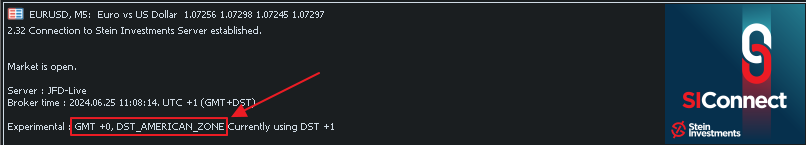 When the market is open, FX Volume automatically determines and applies the correct GMT and DST settings, ensuring perfect alignment with your broker’s data. SI Connect also displays your terminal’s active GMT/DST settings in its status panel for reference.