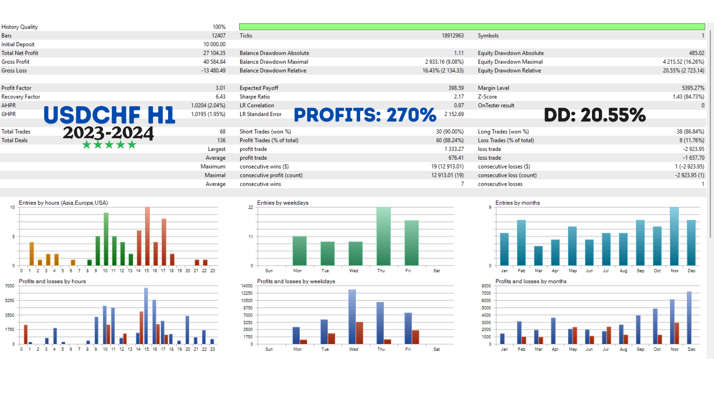 In this blog post, I’ll share a trading strategy I used with USDCHF during 2023–2024, which produced very nice results. Feel free to try it out . However, please remember that past performance is not a guarantee of future results, so always proceed with caution. Also before you try it read the Important Note at the bottom of this blog post.