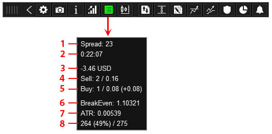 To switch a symbol on the chart, click the button with the desired symbol 5.