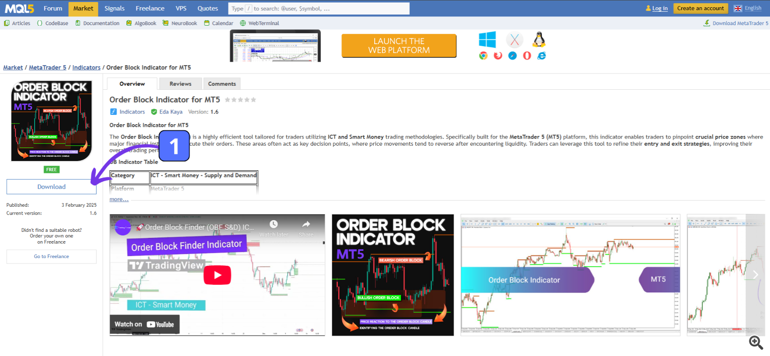 To access the MQL5 website and download indicators, you’ll need an account.