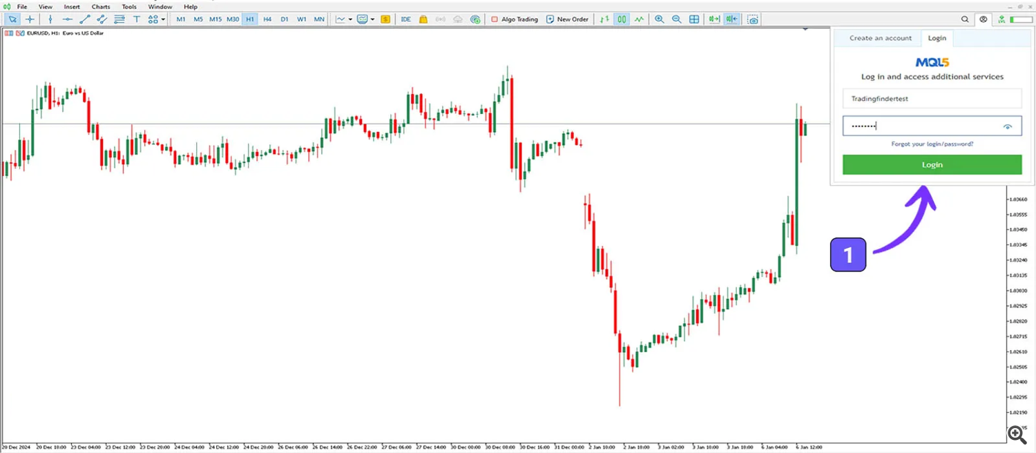 1. Log into your MT5 platform using your MQL5 account credentials.