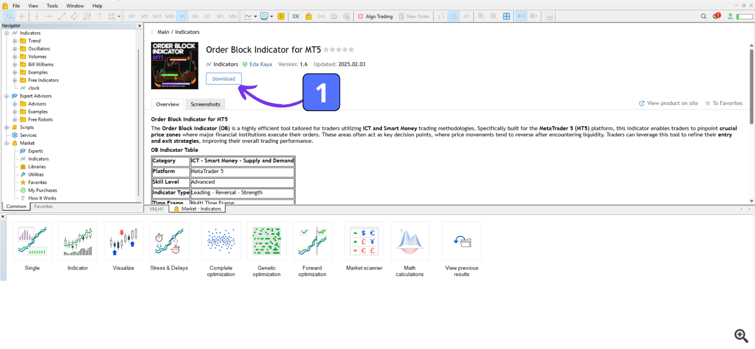 4. Click on the indicator to open its download page, where you’ll find detailed information about its features and functionality.