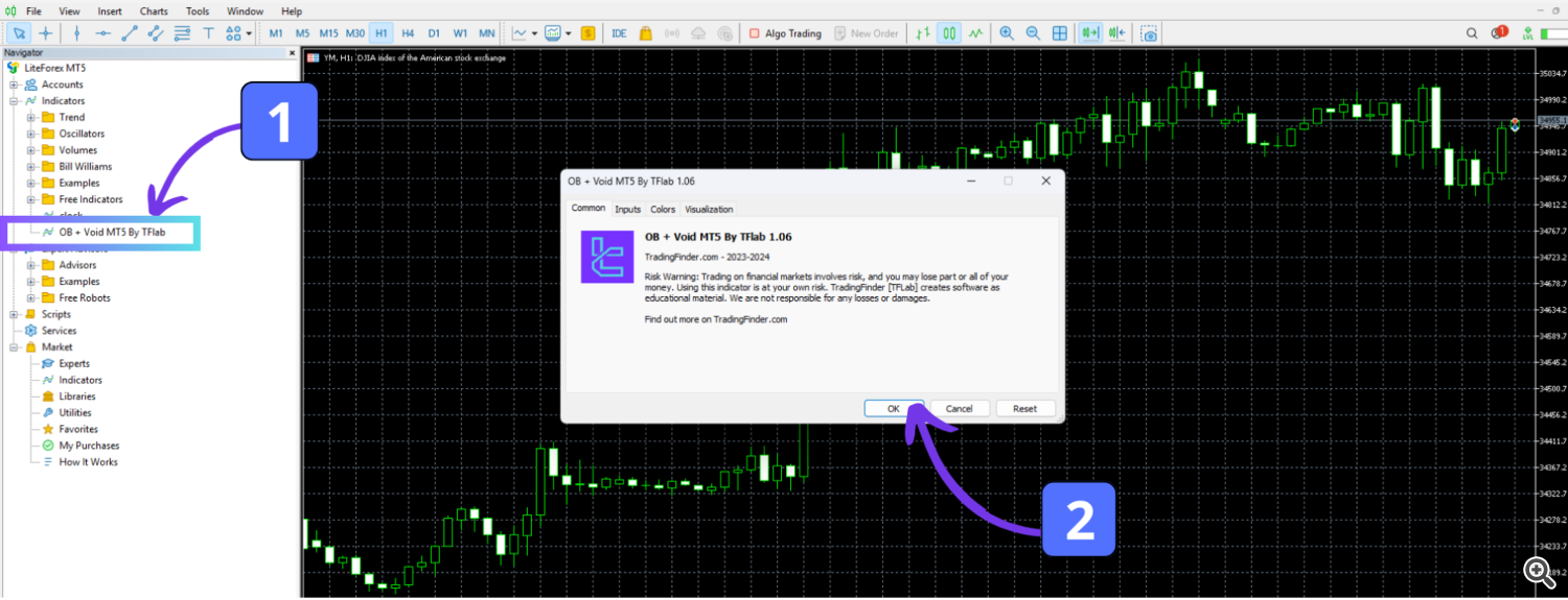 3. Drag the indicator onto your chart and click “OK” to activate it.