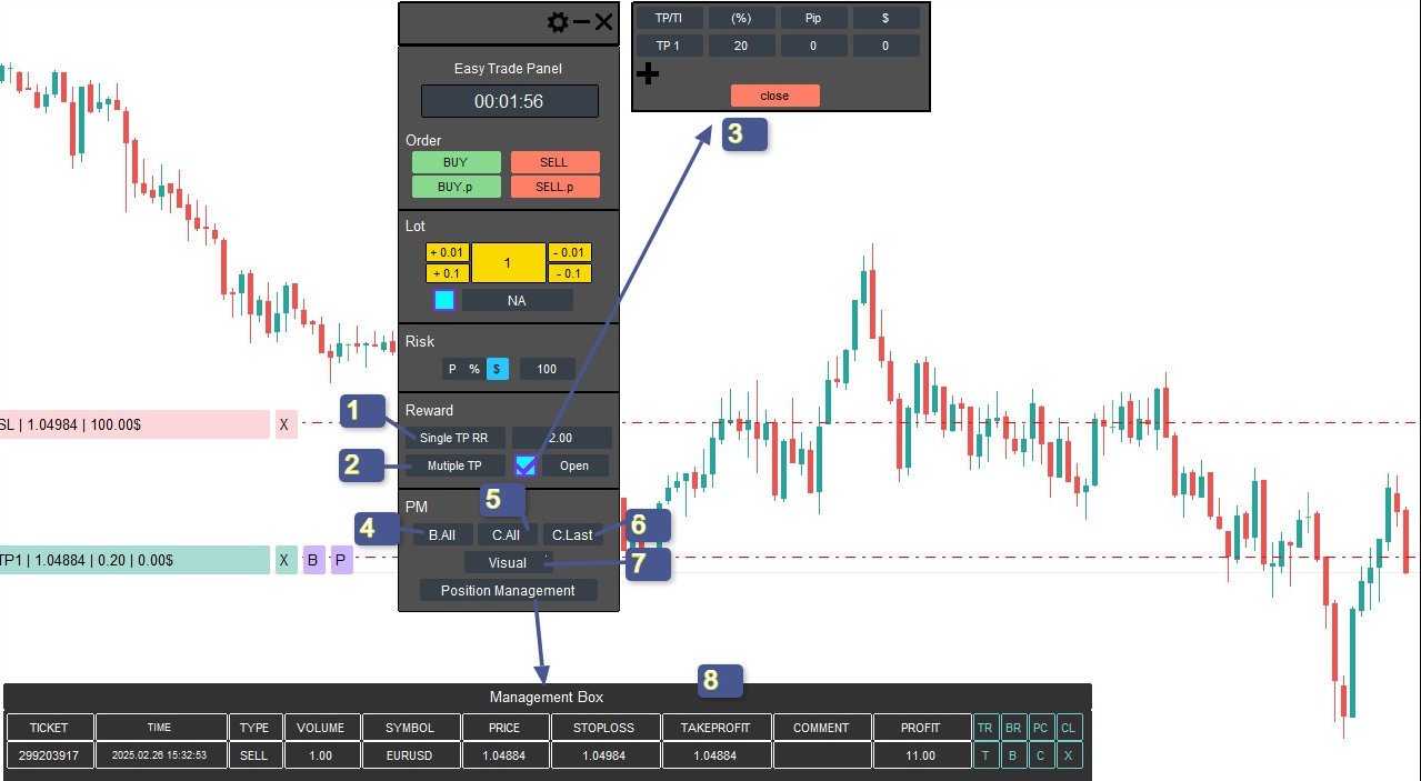 With a professional and user-friendly interface, the Easy Trade Panel Expert allows traders to: