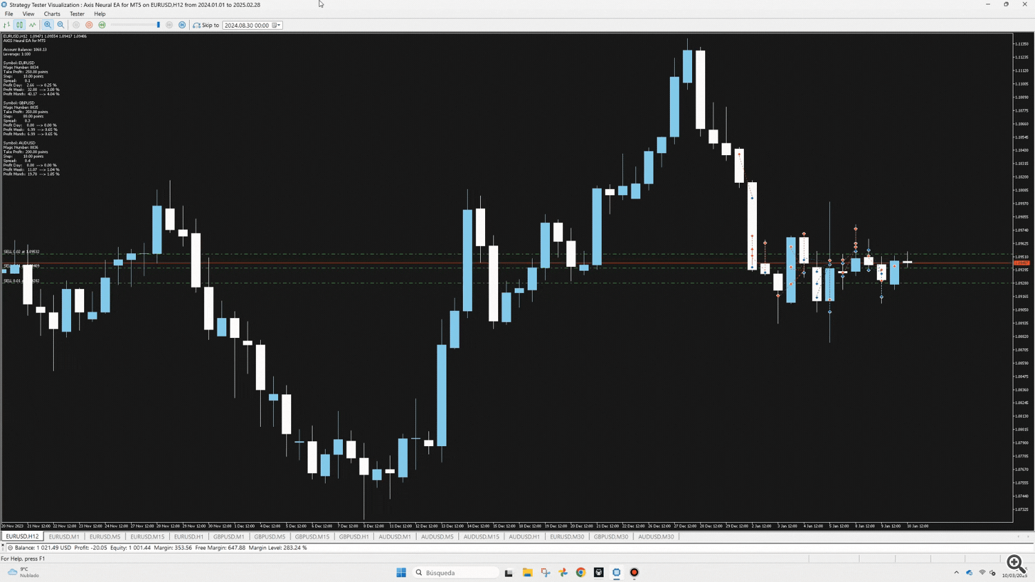 Axis Neural EA for MT5 is an Expert Advisor designed for the MetaTrader 5 platform, ready to trade multiple currency pairs simultaneously. In its default settings, it operates with: