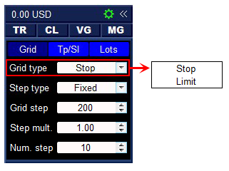 Stop — the grid is built from BuyStop or SellStop orders, and is directed towards the profit of the first order. This type is used in strategies that increase profits.