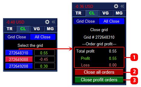 The Grid Close subtab is intended for closing the order grid.
