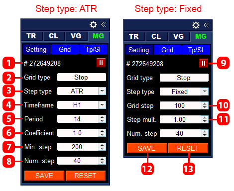 - Min grid step (ATR) — the minimum step (for the ATR method).