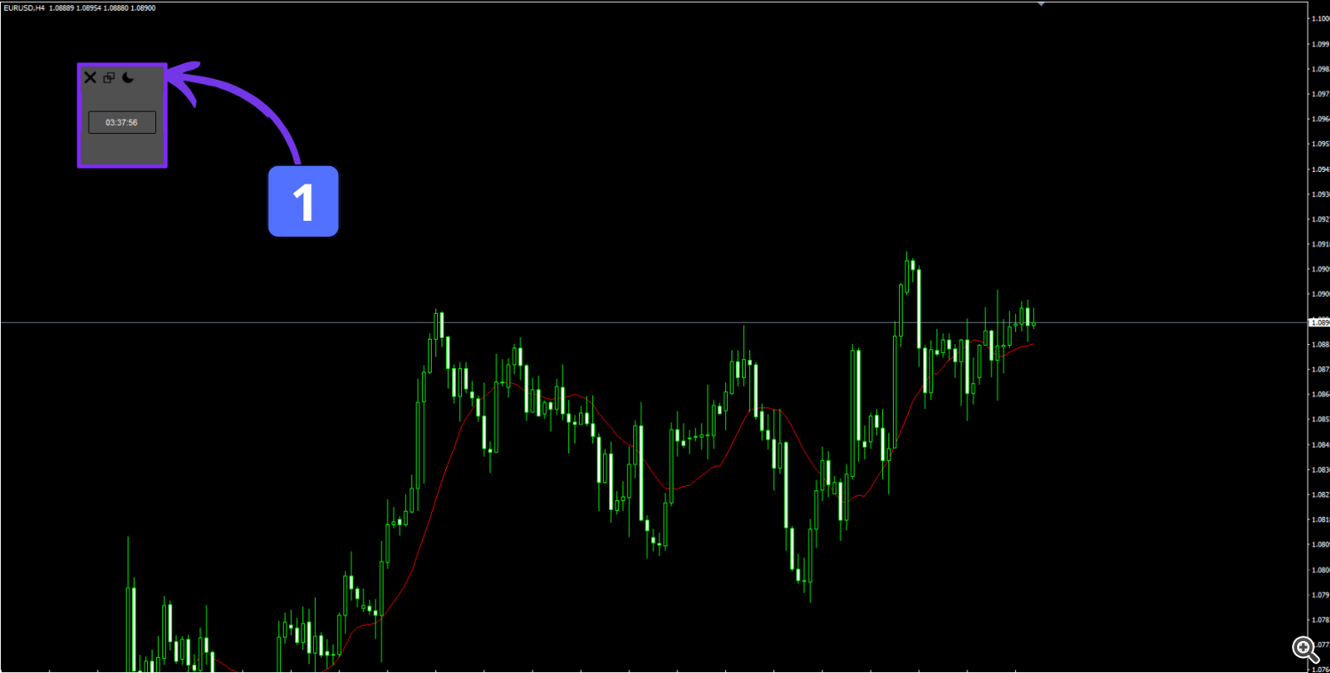 1- This button is used to minimize the panel. In this minimized state, the panel only displays the time remaining until the next candle closes. This feature allows traders to focus on the essential information while keeping the chart clean and uncluttered.