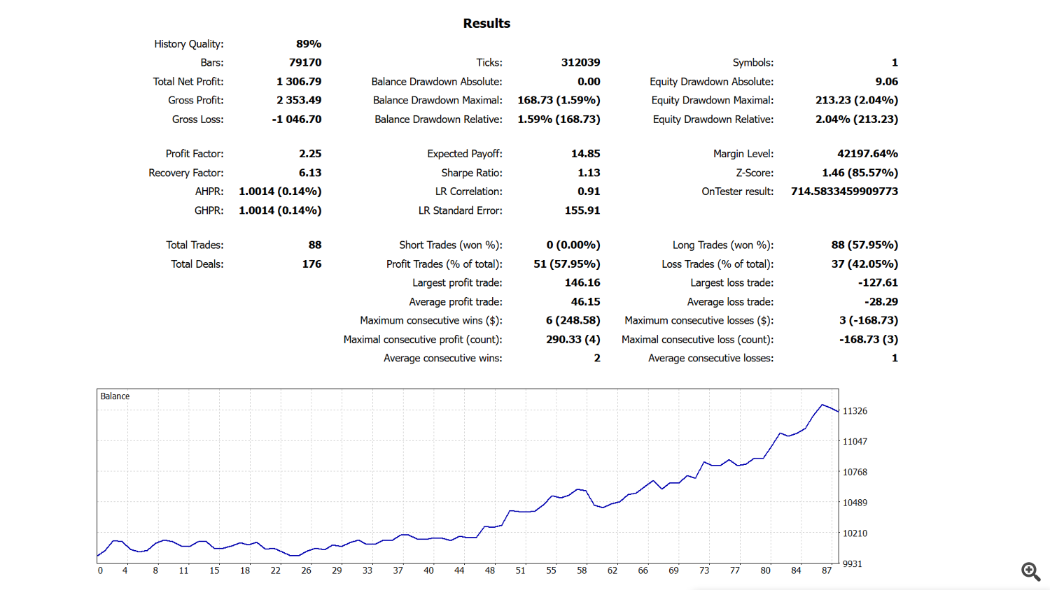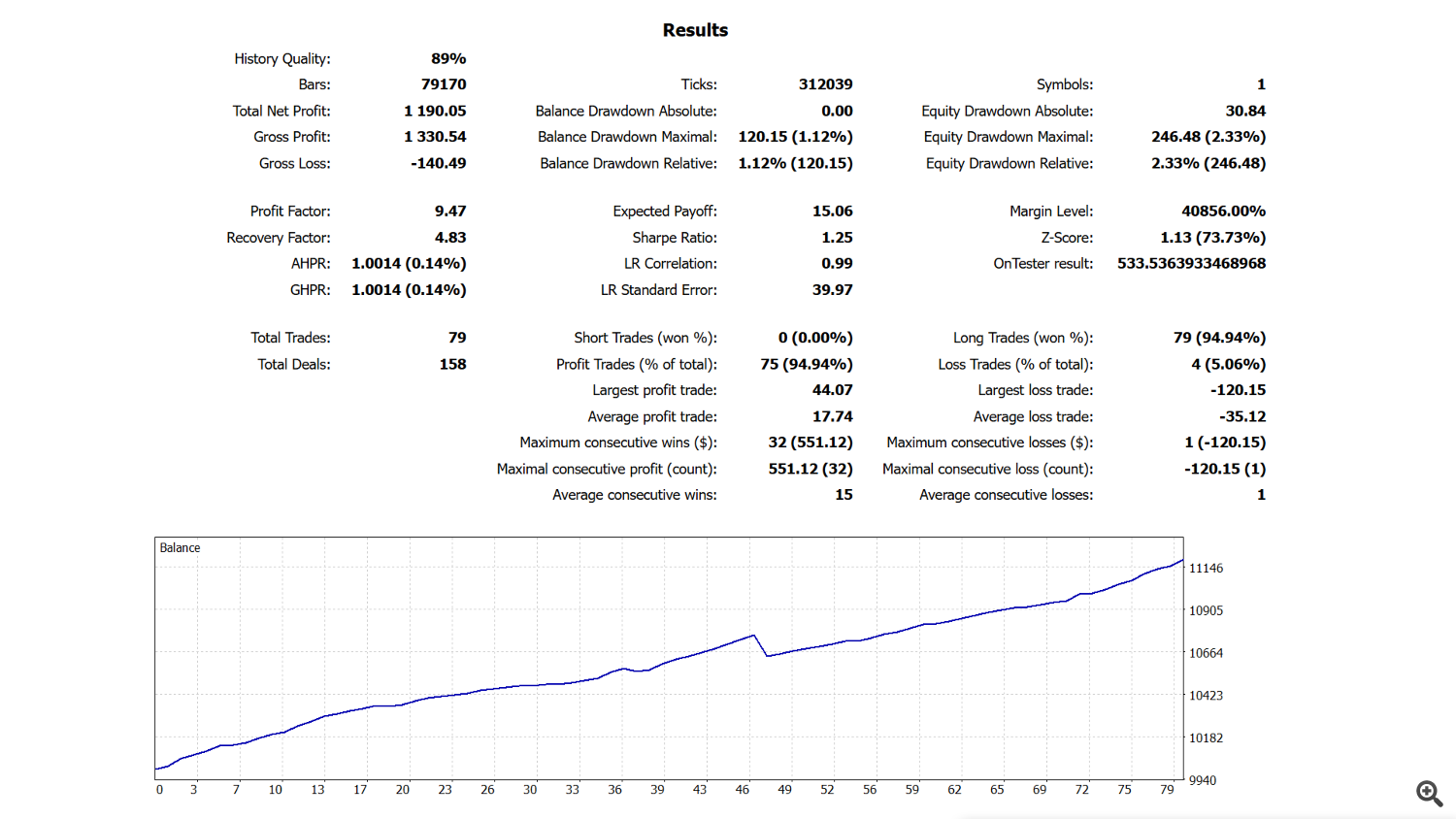 As a result, we got a trading system that wins 95% of the time. With a good recovery factor and a huge profit factor. The disadvantage can be considered a small number of transactions and a small ratio of stop loss to takeprofit. Nevertheless, this is a rather special case. And using this set of indicators, you can create other successful options for exiting a position.