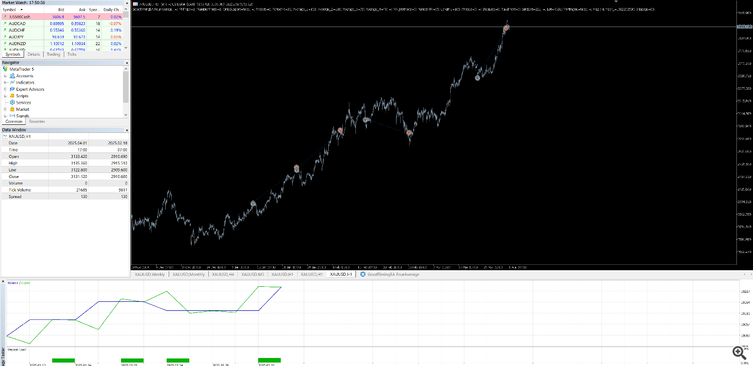 To evaluate the results, we will use the following symbols: XAUUSD (Gold). For convenience, let’s choose the hourly (H1) timeframe and the testing range from 2011 to 2025. This range captures different market situations, including falls and stagnation of gold prices.