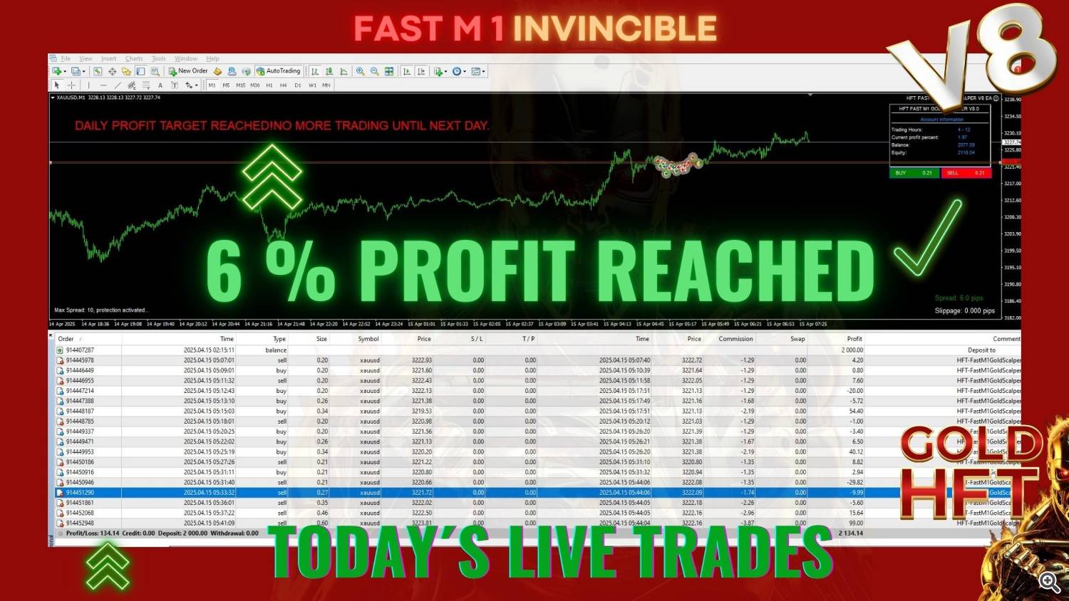 Dear traders, after having voluntarily removed the HFT FAST M1 GOLD SCAPER V6 EA a couple of months ago, and receiving hundreds of messagesāhaving listened to both ācampsā: those who asked me to tame the beast, and those who got very upset when I actually did limit itāI realized that both sides were right, but itās impossible to please different types of traders with different styles and levels of aggressiveness in trading.