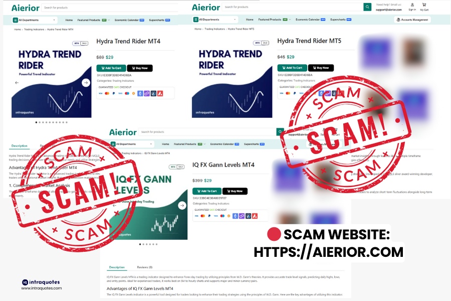 We have identified several unauthorized websites fraudulently using the Intraquotes brand name, product titles, and visuals to deceive traders. These sites replicate our indicators and content to appear legitimate, but they are not affiliated with Intraquotes and are designed to scam unsuspecting users.