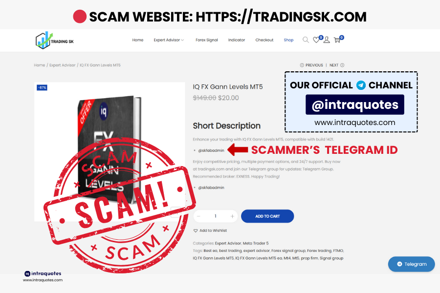 People who have been with us for many years would know that even though our products are listed on our official website, we do not sell our products there. We sell ONLY on the MQL5 platform. Even after creating a reputation and recognition through our hard work and winning a silver trophy from MQL5, it is extremely heartbreaking to see our products’ name/images/description, and other details being misused by scammers to scam people all around the world. We can not stop every one of them, but that doesn’t mean we won’t do anything! So here we are, creating awareness and exposing all those scam websites that are illegally using Intraquotes products and scamming traders who wish nothing but to become successful traders.