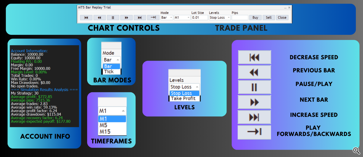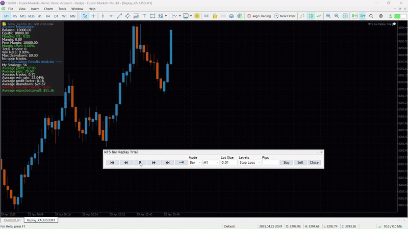 This is the free trial of the MT5 Bar Replay EA. It has limited functionality. [Buy full version here.]