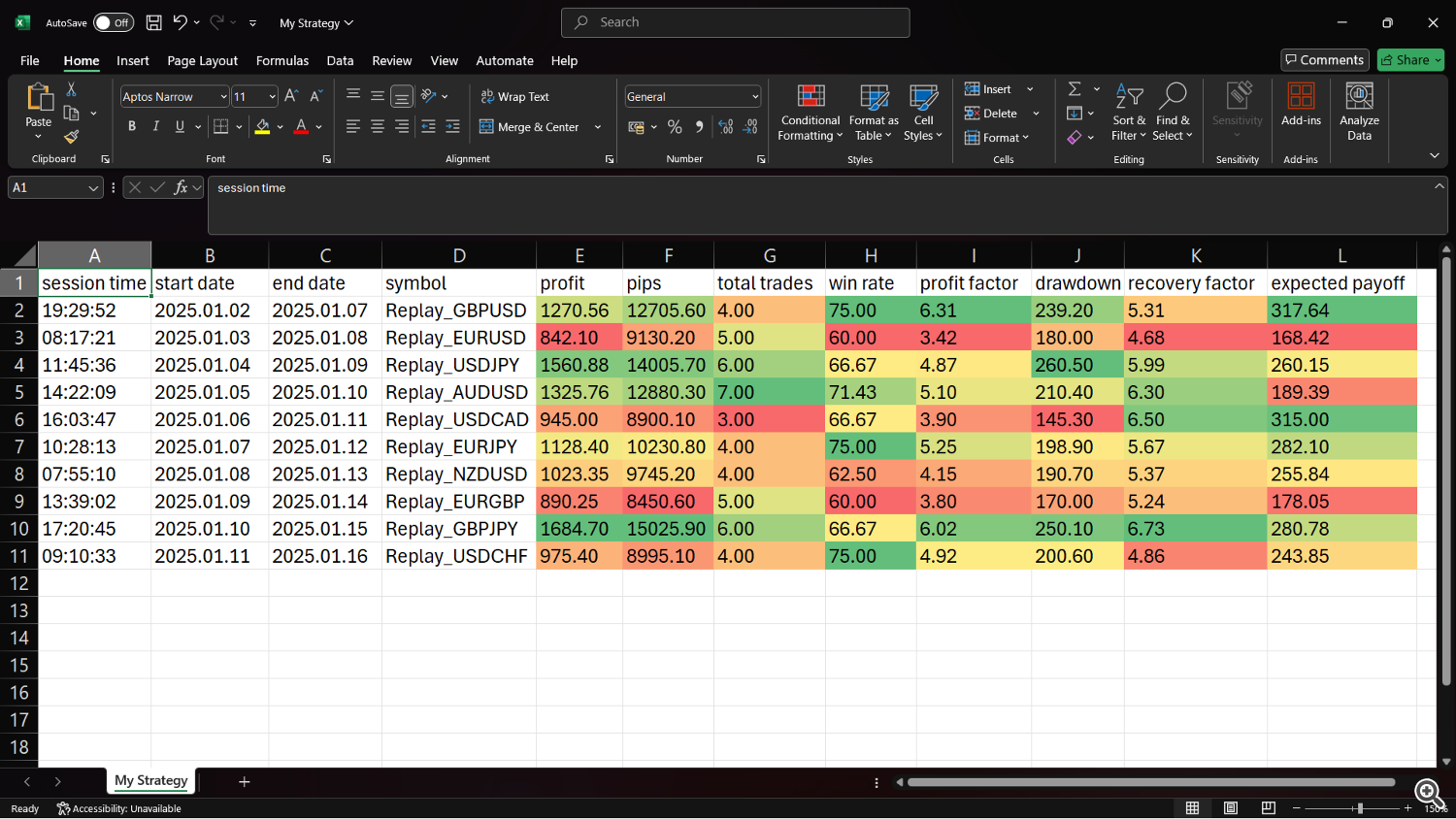 These are the excel results of the “My Strategy” strategy based on the Expert Inputs.