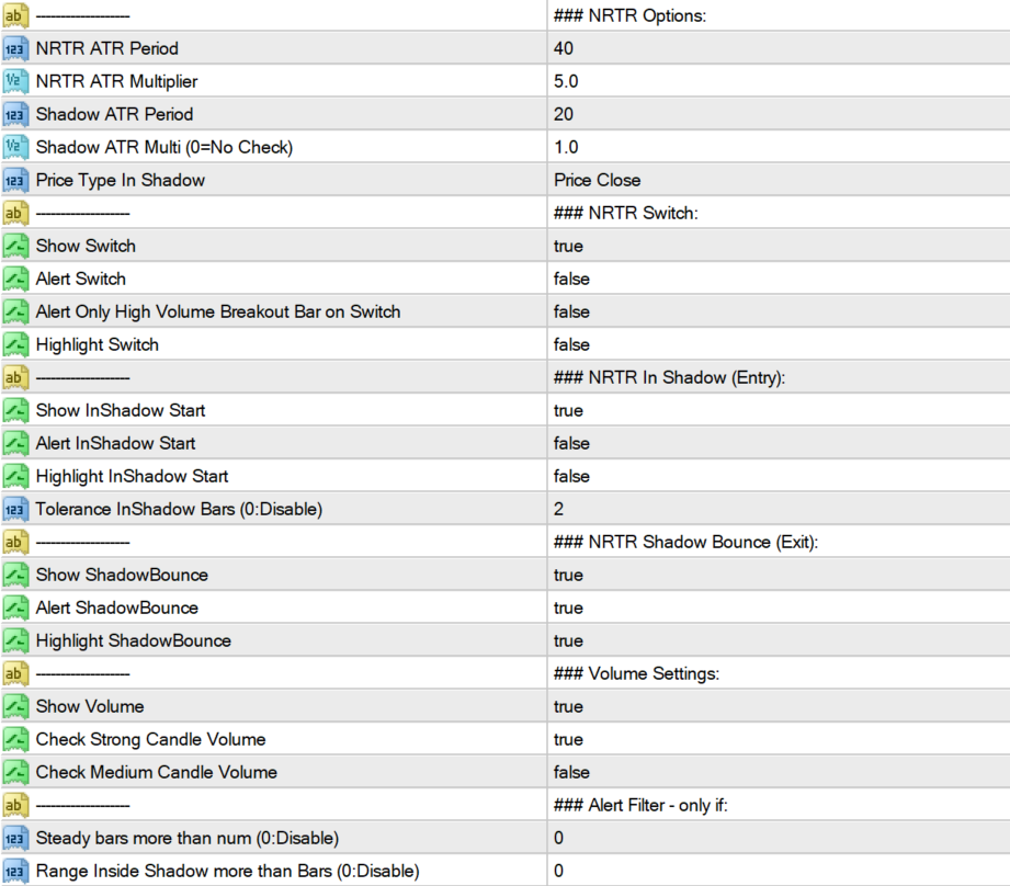 For example when trading NRTR Shadow bounces, keep just the shadow bounce highlights more visible like this: