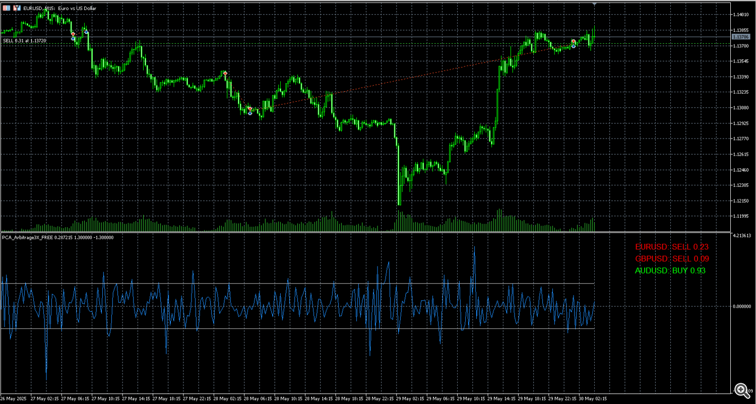 By applying PCA, traders can isolate components that account for the largest variance in data. For instance, if you have three correlated assets, PCA can determine the combination of returns that results in minimal volatility—effectively neutralizing exposure to broad market movements. The EA implements logic to calculate a Score2 value that signals entry opportunities when the dominant factor (anomalous variance deviation) moves beyond a defined range.