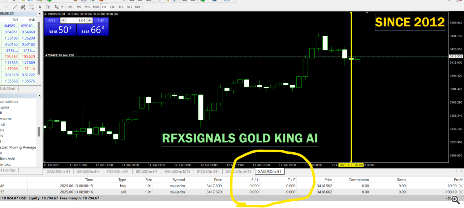 On June 13, 2025, at exactly 08:08 GMT, the RFXSignals Gold King AI initiated a new trade cycle, once again proving how artificial intelligence can optimize trading for superior results.