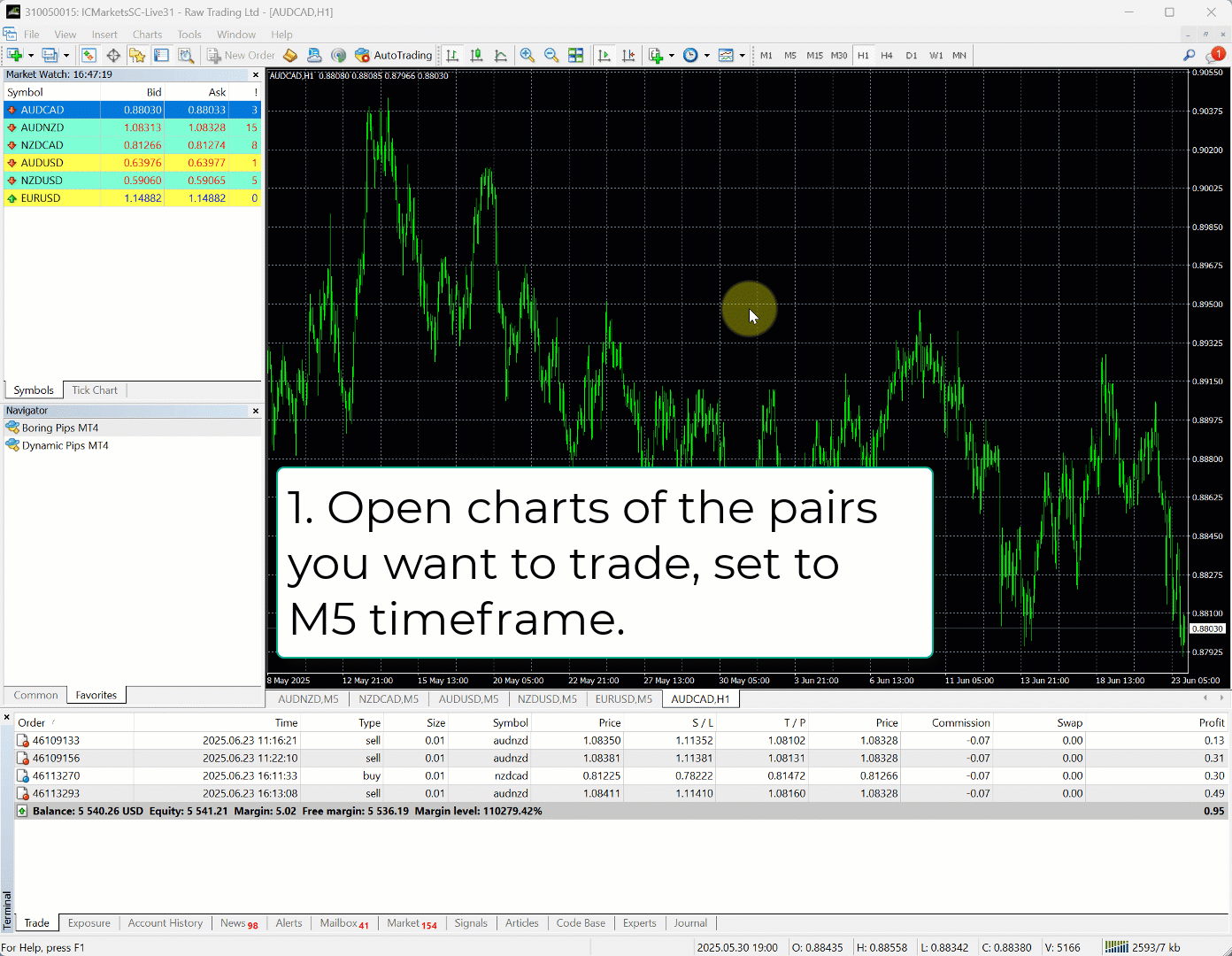 AUDNZD, NZDCAD, AUDCAD, AUDUSD, NZDUSD, EURUSD, USDCAD, CADCHF, EURGBP, NZDCHF, EURCHF.
