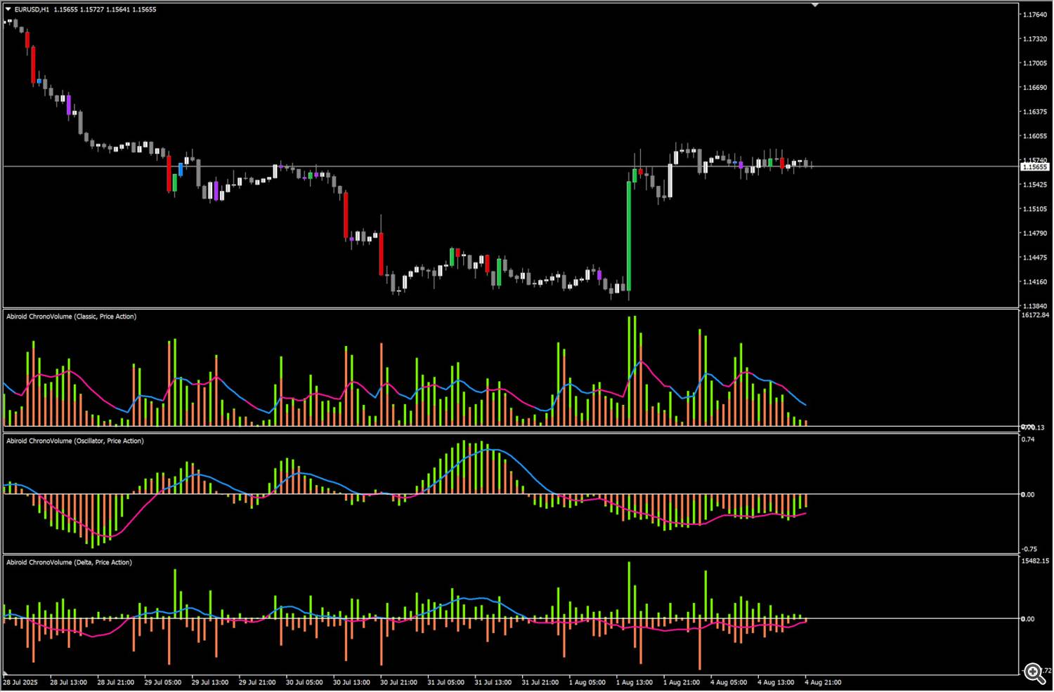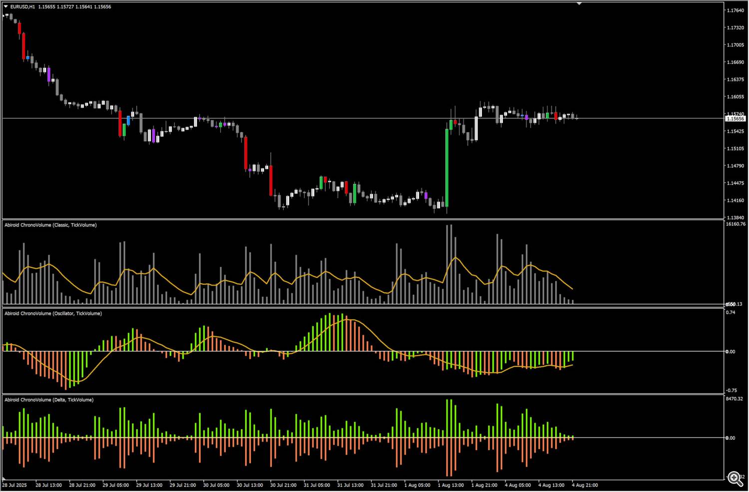 ChronoVolume analyzes volume data in MetaTrader 4 by converting basic tick volume into meaningful trading insights.
