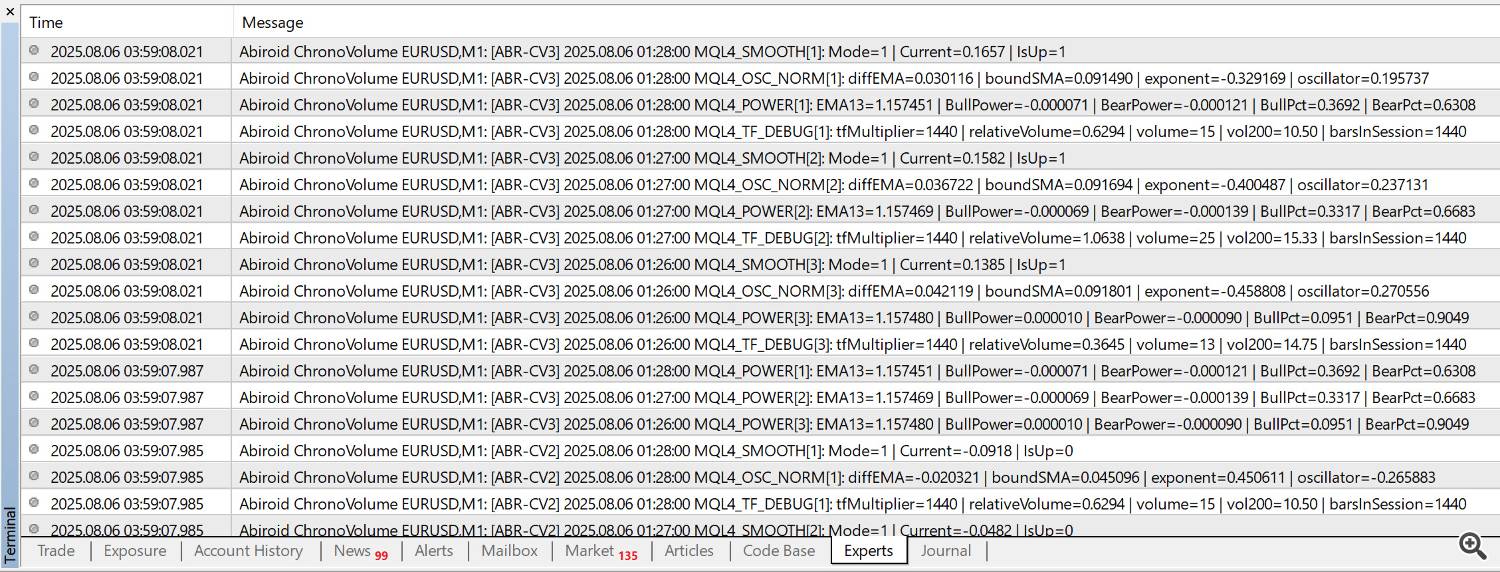 Practical Impact: While this recalculation is mathematically correct and provides smoother, more responsive signals, it means that oscillator values for the last 50-200 bars may shift slightly when new data arrives. For most trading applications, this smoothing benefit outweighs the historical value adjustments. Because new data is more essential for current trades. If you want absolutely non-repainting volume bars, then don’t use the oscillator mode.
