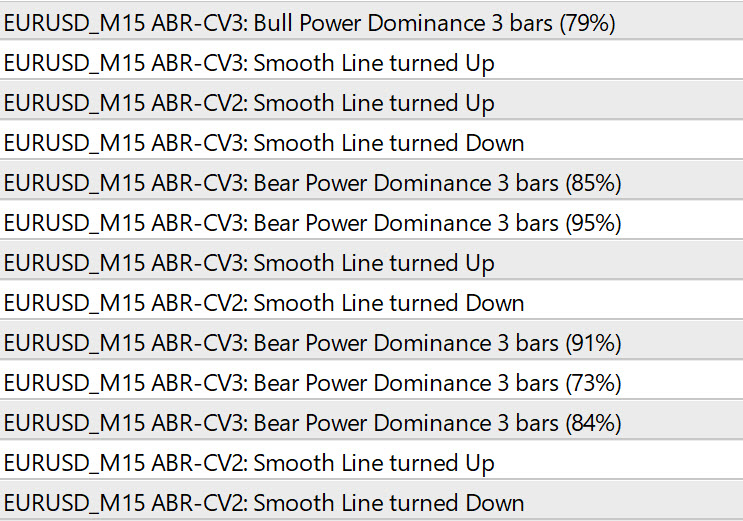 - Bull/Bear Power Dominance: Exclusive to Power mode, this alert monitors consecutive bars where bull or bear power exceeds a threshold percentage (default 70% for 3+ consecutive bars), indicating sustained directional pressure