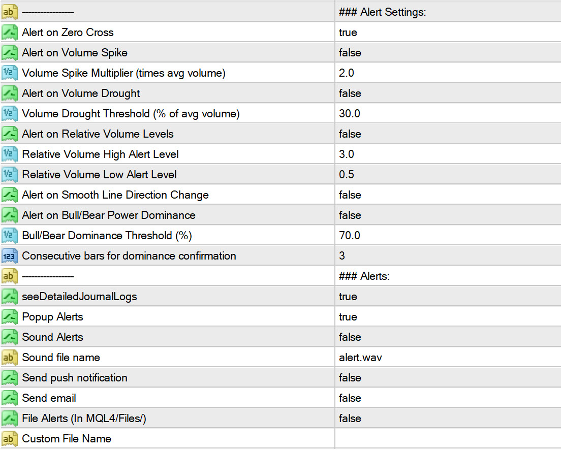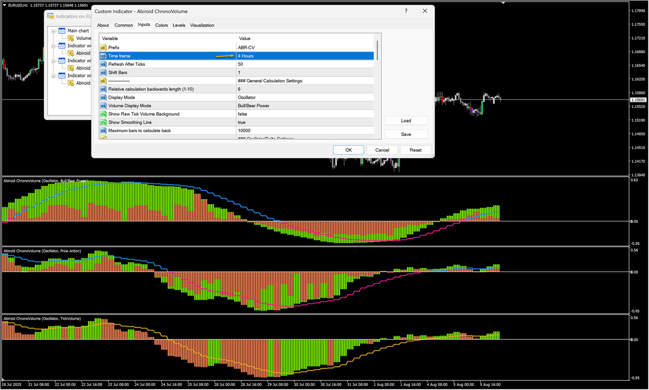 - Volume Type: Select Price Action, Bull/Bear Power, or Tick Volume calculation
