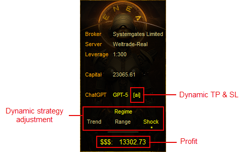 The ENEA mt5 detects the current market status in real time and adjusts the strategy accordingly.