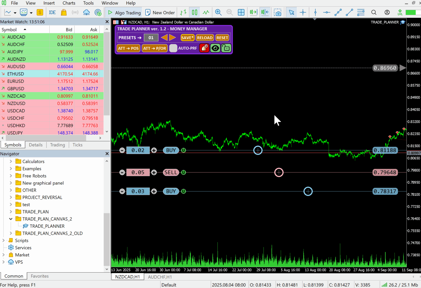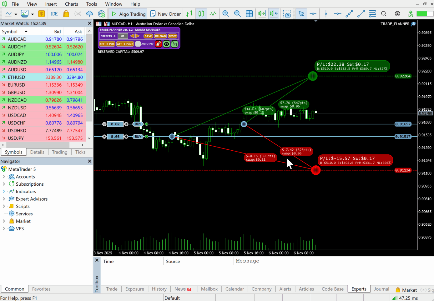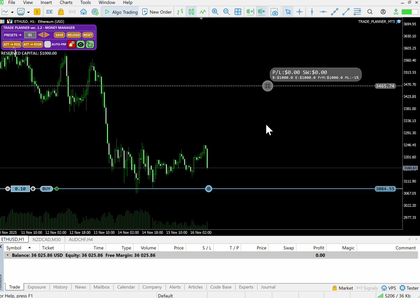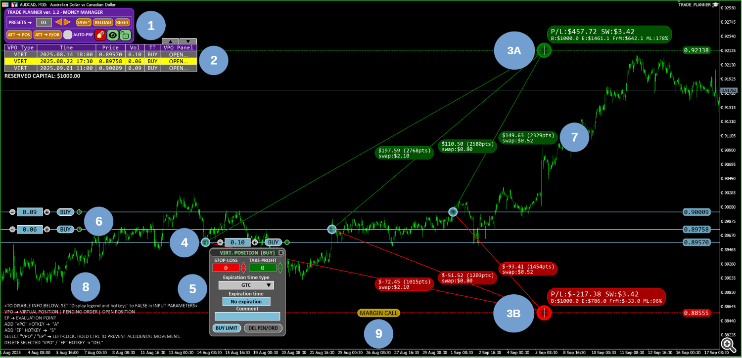 Nevertheless, the user can also open multiple charts with Trade Planner for the same symbol, each using a different amount of allocated capital to test and select the most optimal trading strategy from the others chart.
