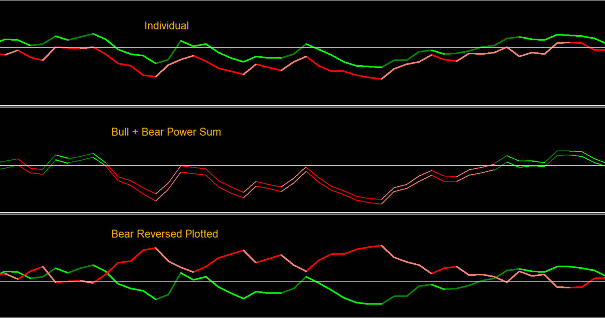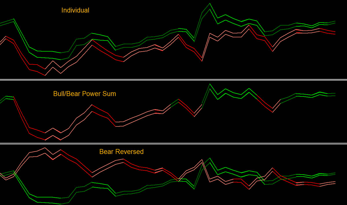 Differences: “Band Individual Display” vs “Bull Bear power Sum” vs “Reverse Bear Power Plotting”: