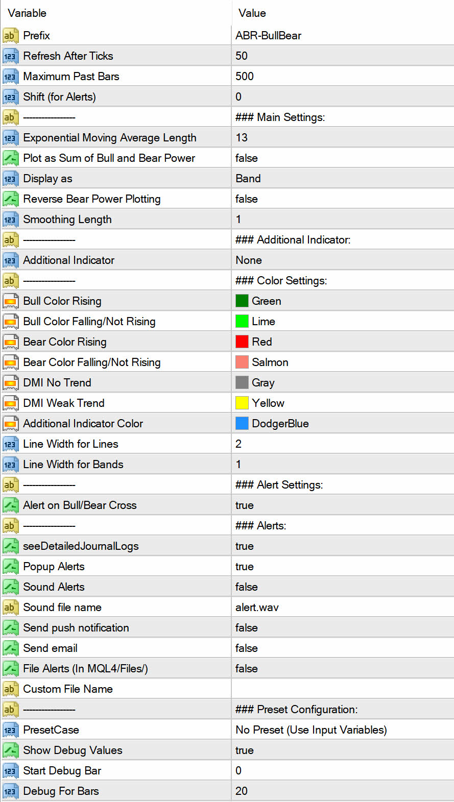 - What it controls: Flips Bear Power upside down for some visual analysis preferences