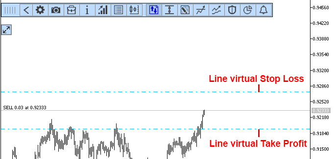 Virtual stop loss and take profit are price levels tied to an order (position). When the current price touches these levels, the position will be closed. Virtual stops perform the same functions as regular stops, they allow you to fix a loss and profit.