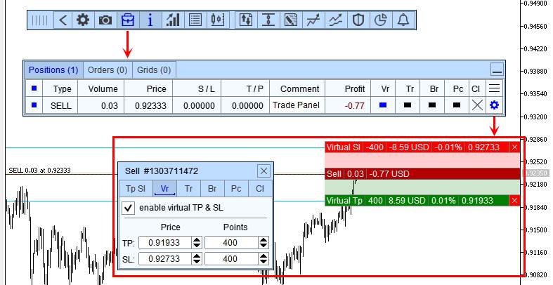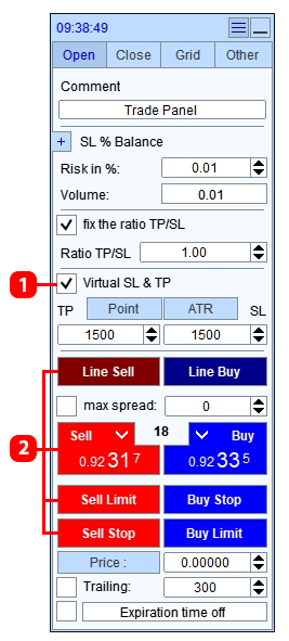 Trade Panel – virtual stop-loss and take-profit