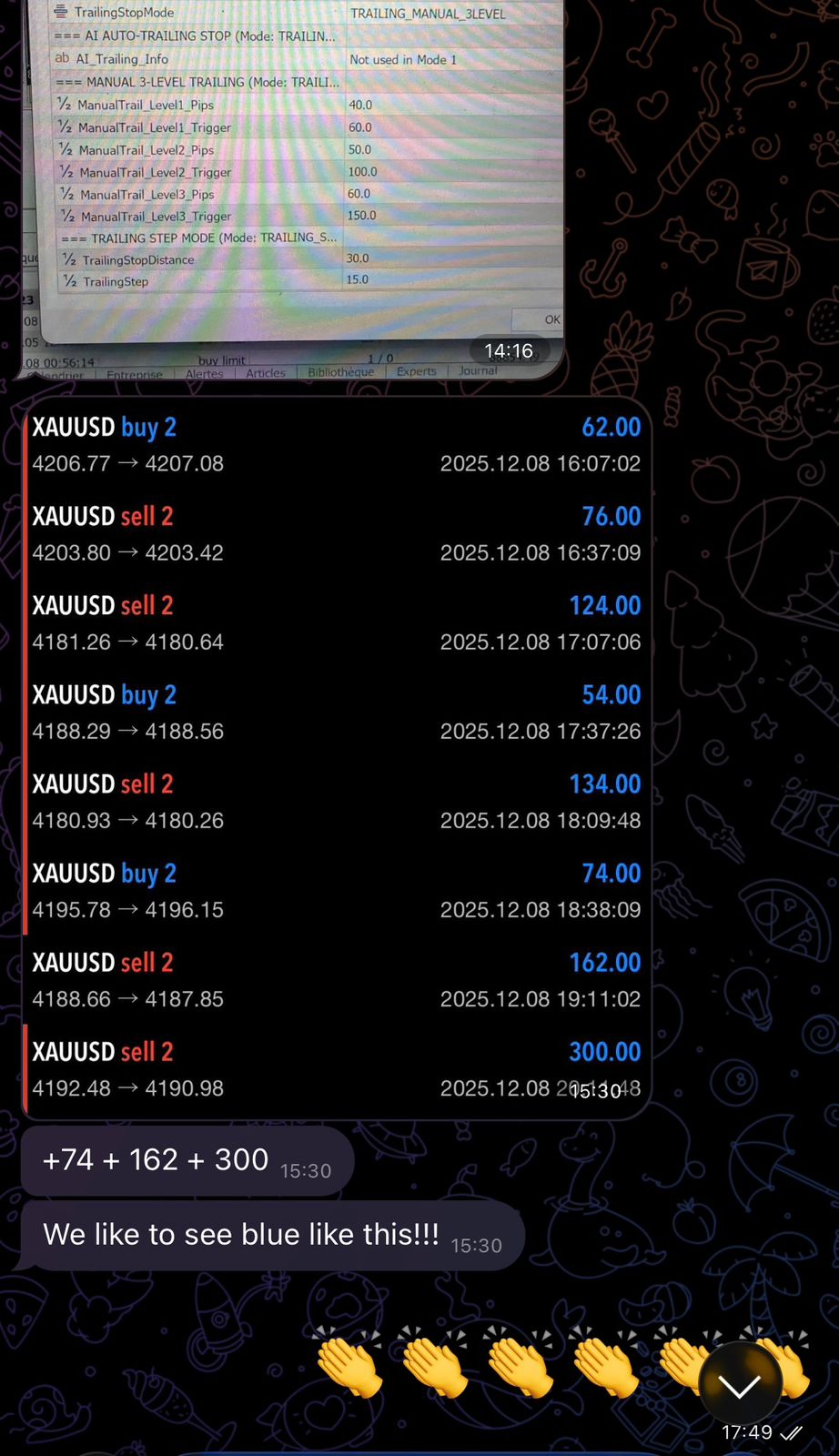 > Caption: User feedback showing how the AI within Quantum dynamically adjusted the TP and SL for XAUUSD, securing profits even in complex conditions.