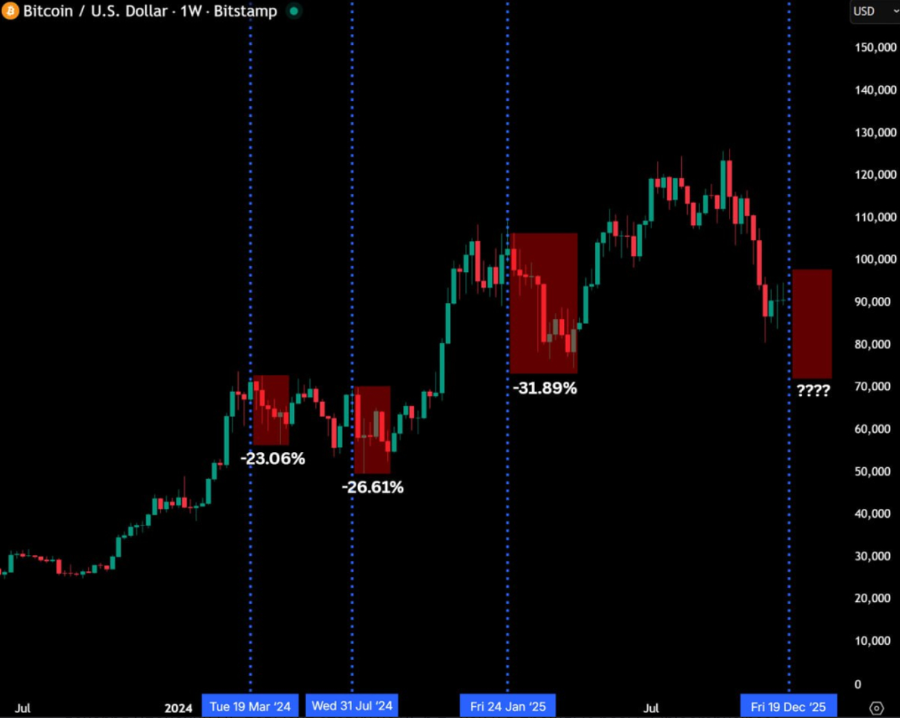 If the Bank of Japan hikes by 0.25% on December 19, expect corrections across other cryptocurrencies too.