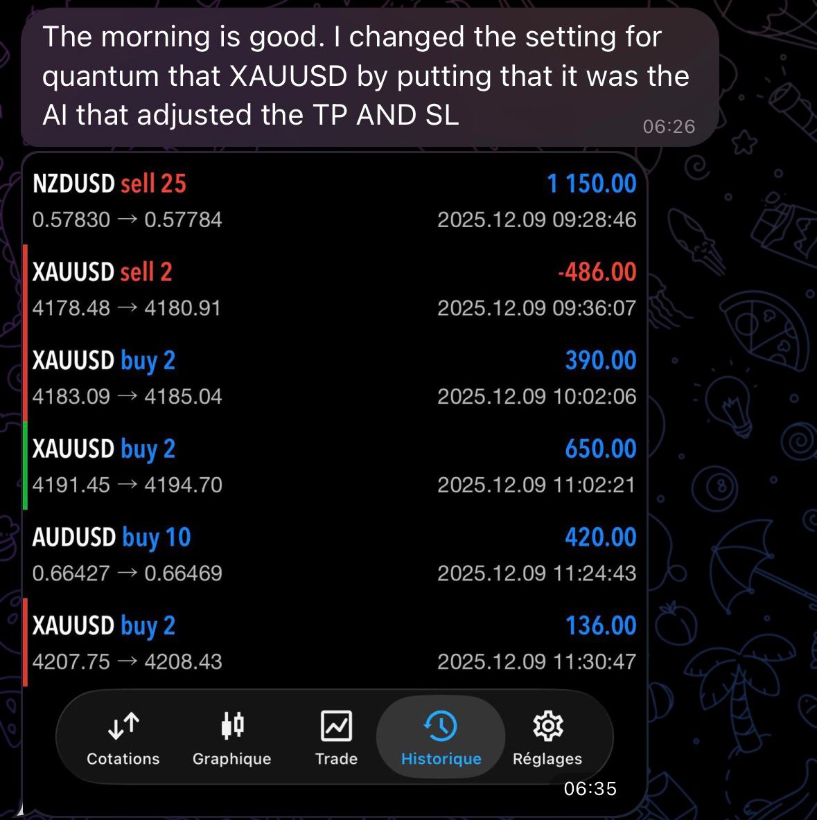 “I changed the setting for quantum that XAUUSD… it was the AI that adjusted the TP AND SL.”