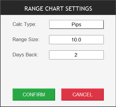 - Range Size: The price range in pips/points (e.g., 10, 20, 50)
